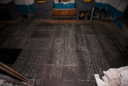 For Afterhours, Karabinovych wrote out the collected reports of confrontation on one of Brave! Factory Festival’s main dance floors, coating it from wall to wall with dense text. Alas, the text was written in chalk.